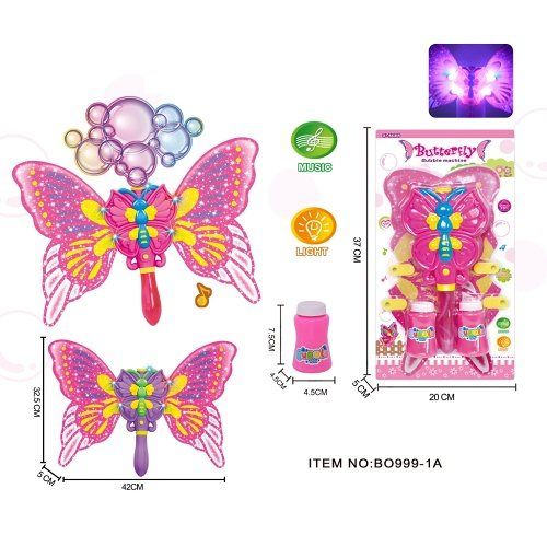 Dětský bublifuk v designu motýla. K dostání ve 2 barevných provedeních. Vhodný pro děti od 3 let. Na baterie: 3x AA (nejsou součástí balení)