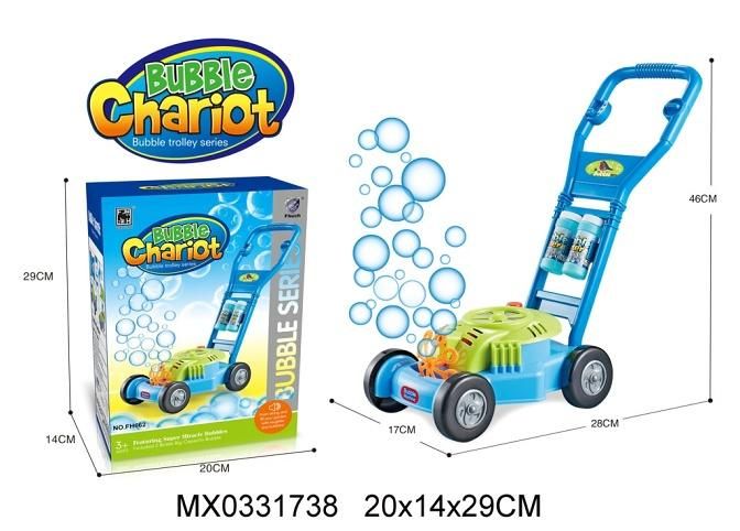 Bublifuk jako sekačka na trávu. Součástí balení jsou dvě náhradní náplně. Na baterie: 3x AA (nejsou součástí balení)