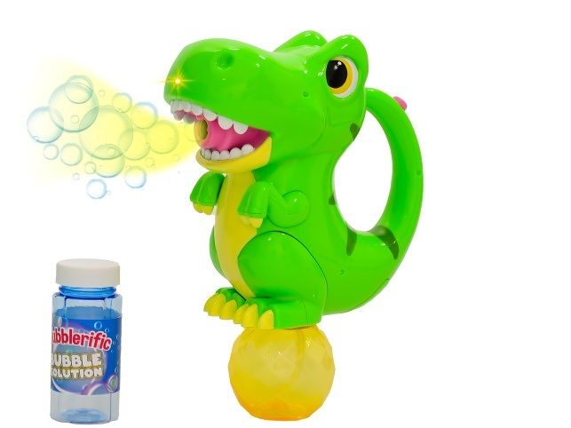 Bublifukovač dinosaurus 20cm na baterie se světlem a s náplní 118ml na kartě