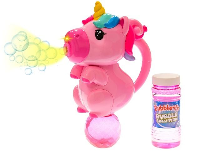 Bublifukovač jednorožec 20cm na baterie se světlem a s náplní 118ml na kartě