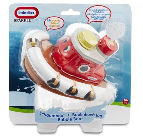 Lodička ve vodě svítí a po naplnění koupelovou pěnou z ní