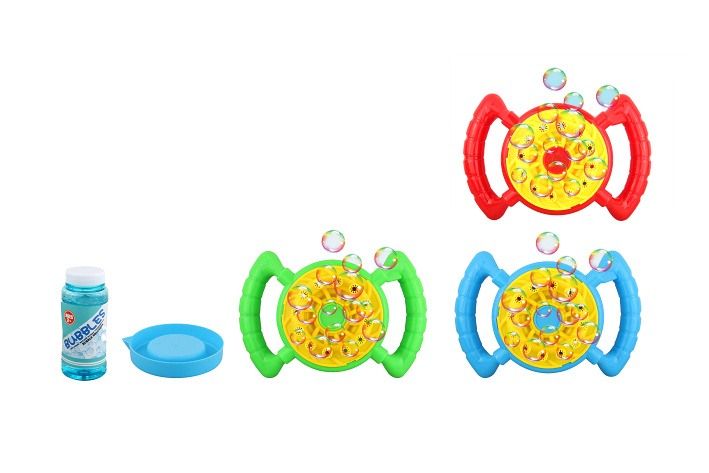 Bublinkovač s 12 tryskami. Přesné rozměry 21x9x14 cm. Baterie 4xAA nejsou součástí. 3 varianty - červená, modrá, zelená.