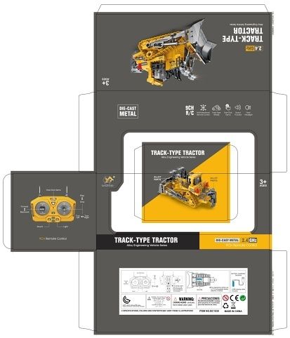 RC Buldozer 1:24 se pohybuje doleva, doprava, dopředu a dozadu, kola jako u buldozeru. Přední světla svítí. Maximální rychlost 10km/h. Frekvence 2,4G, maximální radiofrekvenční výkon 1mW, dosah dálkového ovládání 30 m. Na baterie: 1x 3,7V (je součástí balení), 2x AA (nejsou součástí balení)