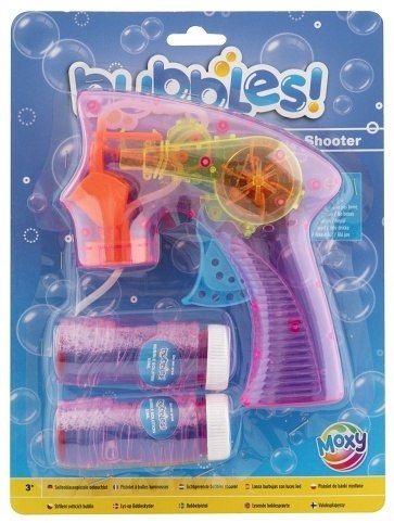 Bulifuková pistole průsvitná svítící + 2 bublifuky 50 ml – dva druhy růžová a modrá. Pistole je průsvitná takže můžeš pozorovat mechanizmus pistole. Součástí balení jsou dva 50 ml bublifuky. Na baterie: 1x LR54 (je součástí balení)