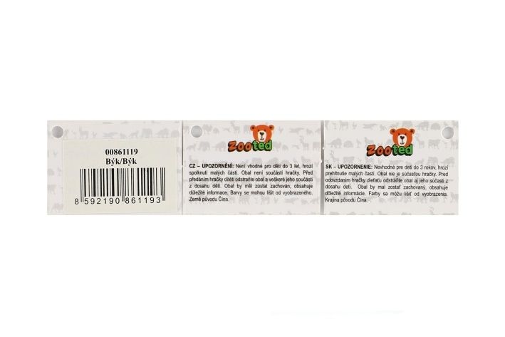 Býk strakatý černobílý zooted plast 13cm v sáčku