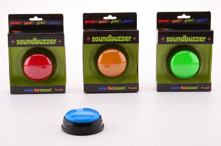Bzučák se světlem a zvukem. Ve čtyřech barevných provedeních. Na baterie: 1x AA (je součástí balení)