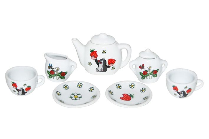 Čajová souprava s Krtkem. Vyrobeno z porcelánu. Balení obsahuje 9 ks malovaného nádobí.