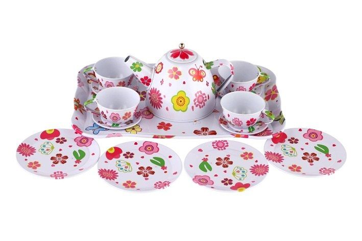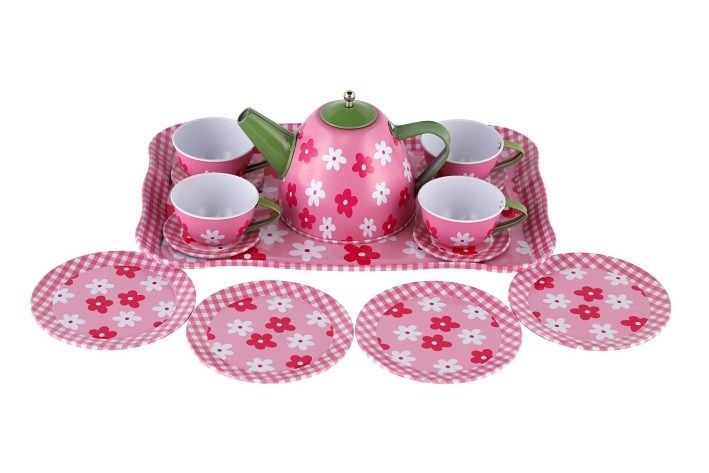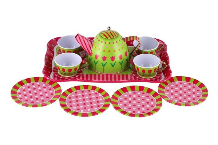 Chtěli byste si dávat čaj o páte, jako to dělají v pohádkách? S touto plechovou čajovou sadou to není žádný problém! Pozvěte kamarádky, posadťe se ke stolu a popovídejte si u setu, kterému nic nechybí! V sadě je 14 ks nádobí.