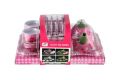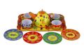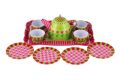 Čajová sada nádobí plech 14ks 4 barvy v blistru 25x17x11cm
