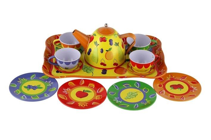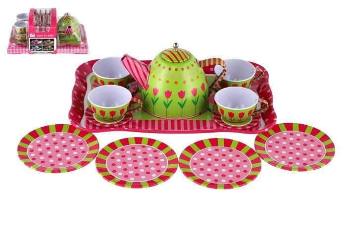 Chtěli byste si dávat čaj o páte, jako to dělají v pohádkách? S touto plechovou čajovou sadou to není žádný problém! Pozvěte kamarádky, posadťe se ke stolu a popovídejte si u setu, kterému nic nechybí! V sadě je 14 ks nádobí.
