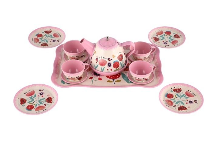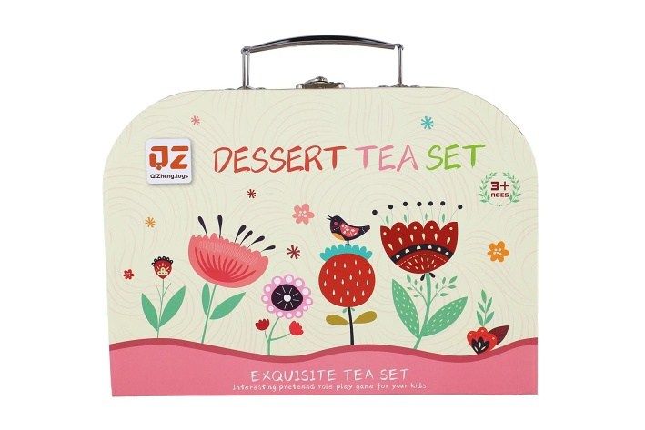 Čajová souprava je nezbytné vybavení každého dětského pokoje. Každá malá hospodyňka ho musí mít ve své kuchyňce, aby mohla slavnostně pohostit každou návštěvu! Čajová souprava umožňuje hrát si o samotě a připravit čaj pro panenky, medvídka nebo sourozence či rodiče. Nebo si můžete s přáteli uspořádat nezapomenutelný čajový dýchánek. Souprava obsahuje konvičku, 4ks šálků, 4ks podšálků, 4ks talířků a podnos. Vše je uloženo v praktickém kufříku.