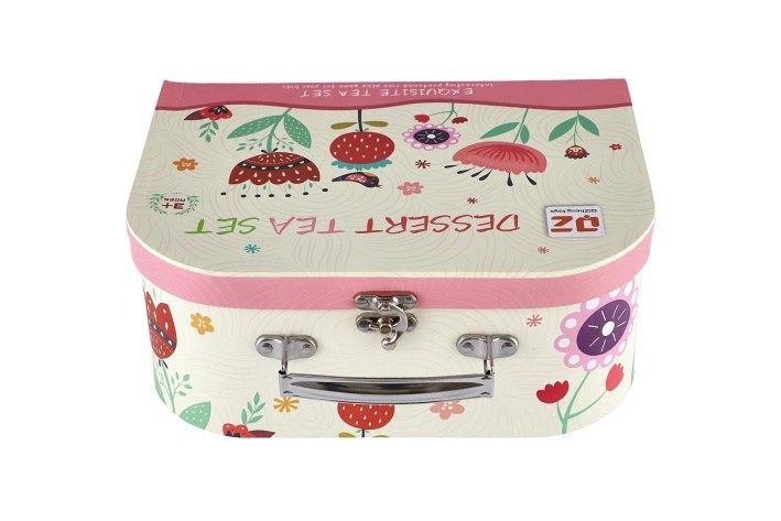 Čajová souprava je nezbytné vybavení každého dětského pokoje. Každá malá hospodyňka ho musí mít ve své kuchyňce, aby mohla slavnostně pohostit každou návštěvu! Čajová souprava umožňuje hrát si o samotě a připravit čaj pro panenky, medvídka nebo sourozence či rodiče. Nebo si můžete s přáteli uspořádat nezapomenutelný čajový dýchánek. Souprava obsahuje konvičku, 4ks šálků, 4ks podšálků, 4ks talířků a podnos. Vše je uloženo v praktickém kufříku.