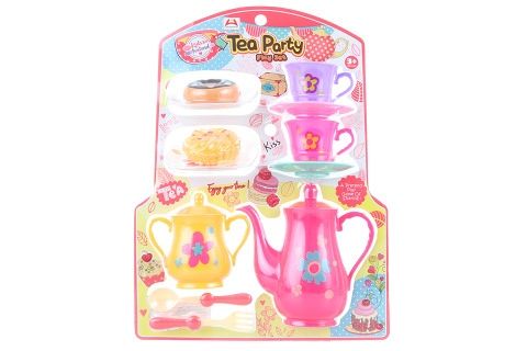 Plastový čajový servis obsahuje konvici, cukřenku, dva šálky s podšálky, dva tácky se zákusky, vidličku a lžičku. Rozměr balení cca 36 x 27,5 x 9 cm. Věk 3+