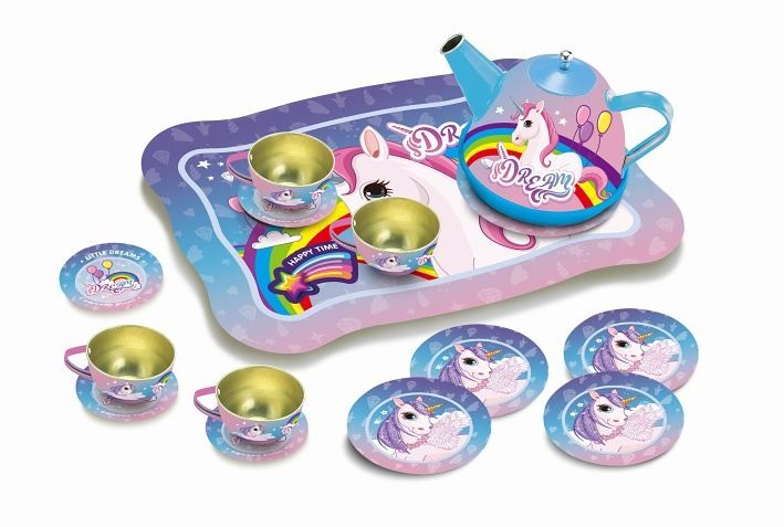 Čajový set v kufříku, jednorožec. Rozměry kufříku s rukojetí 25 x 19 x 10 cm. Obsah balení - konvice, 4 x šálek, 4 x podšálek, 4 x talířek. Vyrobeno z kovu.