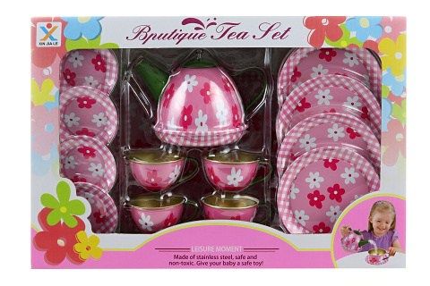 Čajový set obsahuje: 1x konvička cca 11cm, 4x hrníček s podšálkem, 4x talířek a 1x tác. Rozměry balení cca 32 x 22 x 9 cm. Věk 3+