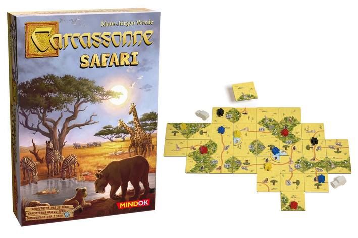 Carcassonne: Safari je samostatná hra z rodiny Carcassonne, kterou lze plně hrát zcela samostatně. Vydejte se do africké savany a vyhledejte ta nejlepší místa s výhledem na divoká zvířata. Zvláště u napajedel se to jimi jen hemží.