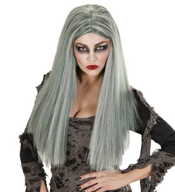 Čarodějnická šedá paruka dlouhá