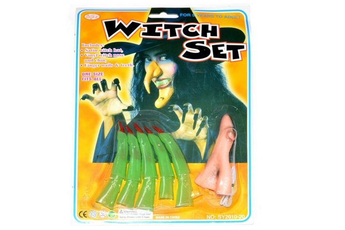 Set čarodějnice vhodný ke kouzlení, párty nebo na karneval. S těmito průhlednými násadami na prsty s dlouhými nehty a čarodějnickým nosem můžete strašit děti na pohádkové akci, vzít si je můžete na slet čarodějnic nebo na halloweenskou párty.