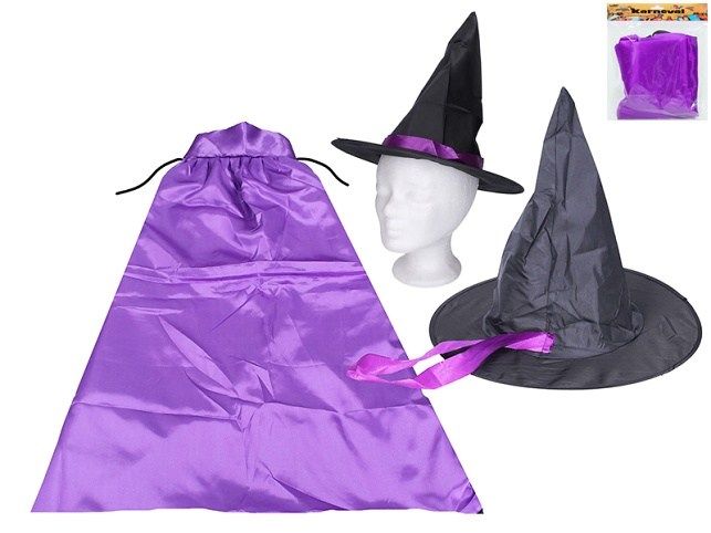 Čarodějnický klobouk 31x28cm a plášť 75cm - karnevalový doplněk v sáčku