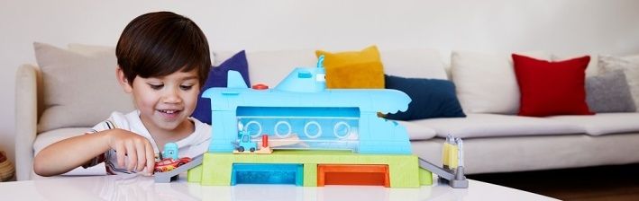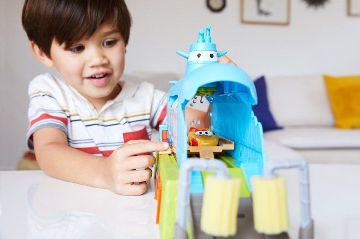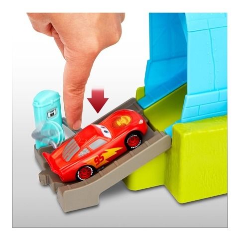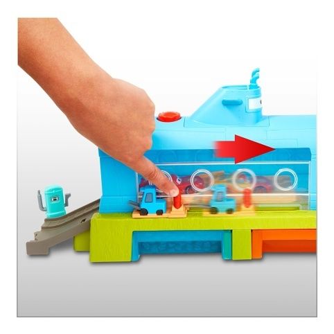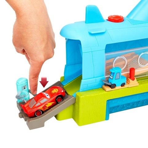 S herním setem Color Changers Velrybí automyčka pro mytí aut v ponorce se děti budou bavit. Součástí balení je i vozidlo Blesk McQueen Color Changers, se kterým se můžou hned vrhnout do akce! Děti mohou sledovat, jak se barva autíčka mění přímo před jejich očima. Naloží Bleska McQueena dovnitř, pak posunou obsluhu vysokozdvižného vozíku a přesunou závodníka přes automyčku ve tvaru ponorky. Stříkající teplá voda změní vzhled vozidla Color Changers; ponoření do ledově studené nádrže s vodou jej zase změní na původní barvu. Pak už stačí jen poslat auto přes „sušící“ pěnové válce, natankovat u pumpy a vyrazit vstříc novému dobrodružství. Barvy a provedení se mohou lišit.