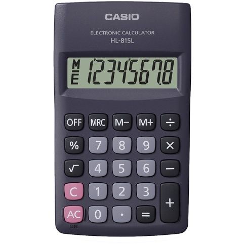 Kapesní kalkulátor Přehledný 8mi místný displej Výpočet procent Napájení: bateriové 1xAA (LR6) Životnost baterie 2 roky Rozměry: 18x69,5x118 Hmotnost: 65g EAN 4971850163039 BK - černá barva