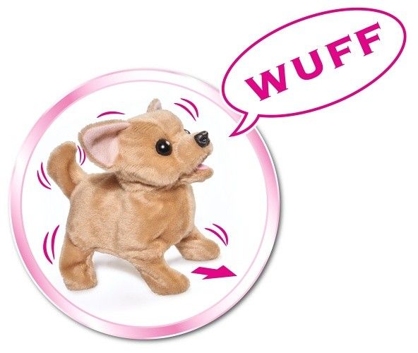 Plyšové štěňátko Čivava chodí, štěká a vrtí ocáskem. Velikost pejska 15 cm.