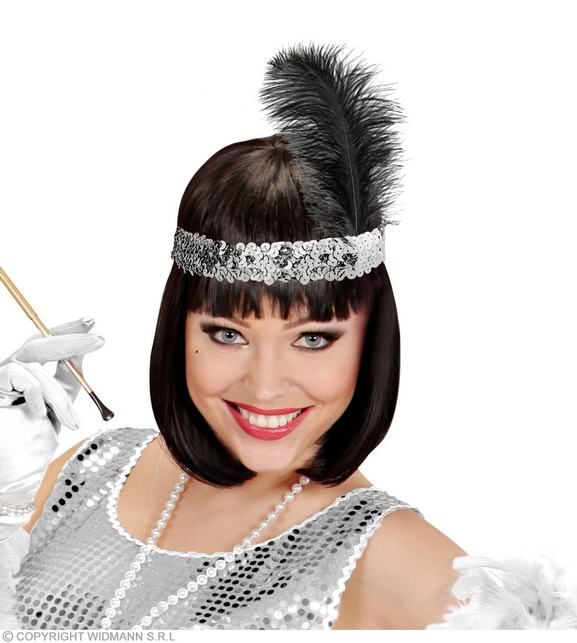 Čelenka Charleston flitrová s pérem, doplněk v retro stylu od firmy Widmann, pružná.