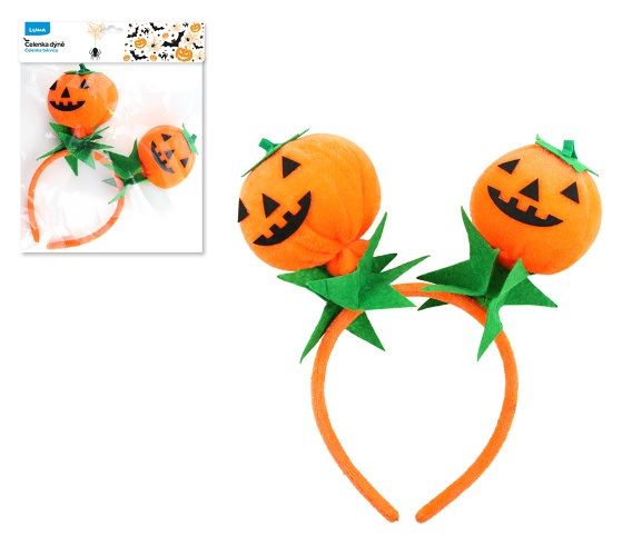 Karnevalová čelenka s dýněmi- barva: oranžová- rozměr:UPOZORNĚNÍ:Není hračka. Doporučujeme dohled dospělé osoby. Vhodné k dekorativním účelům, na párty a karnevaly. Nepoužívejte výrobek v blízkosti ohně.