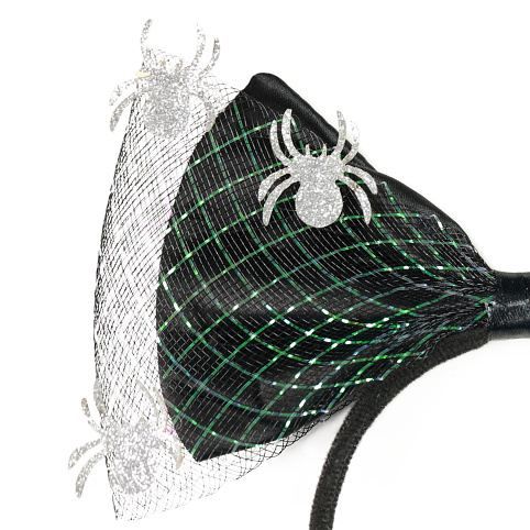 Úžasná čelenka s velkou mašlí a pavoučky je senzačním doplňkem na párty či karneval. Ideální do vlasů při oslavě čarodějnic nebo halloweenu.