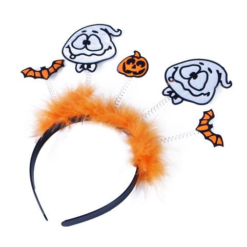 Senzační čelenka zdobená peřím s halloweenským motivem. Tahle karnevalová vychytávka je perfektním doplňkem na večírek nebo Halloween párty!