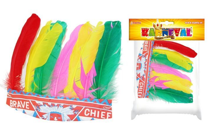 Dětská čelenka z barevného peří pro malé indiány. Čelenka je zdobená barevným peřím, je na gumičku. Tato dětská karnevalová maska promění vaše dítě v opravdového indiána.