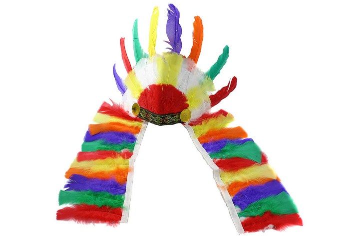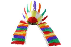 čelenka indiánská barevná Karnevalová čelenka náčelníka s zdobená barevnými pery. Rozměry Š x V x H: 26 x 33 x 2 cm Doporučený věk: Od 14 let