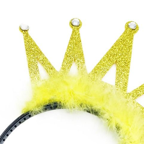 Dětská čelenka se zlatou korunkou, zdobená kamínky a peřím. Perfektní doplněk ke karnevalovému kostýmu.