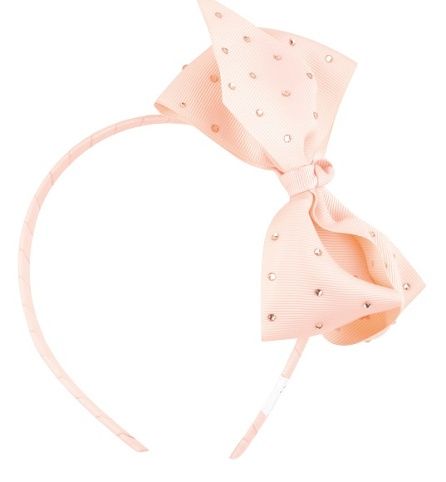 Čelenka s mašlí a perličkami, světle růžová