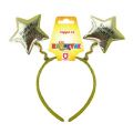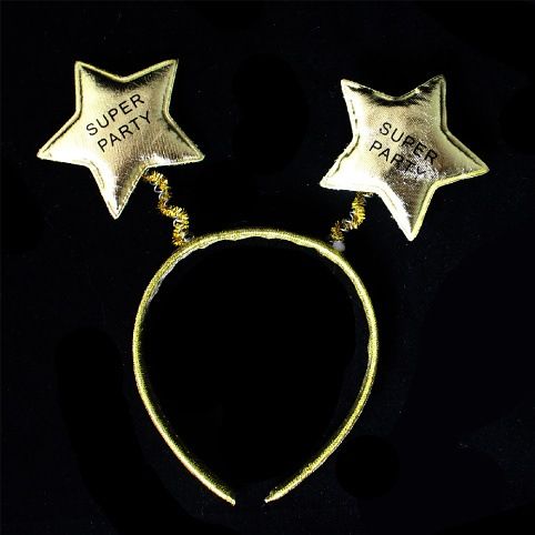 Karnevalová čelenka ve zlaté barvě je zdobená hvězdičkami s nápisem SUPER PÁRTY. Hvězdy jsou k čelence připevněny pomocí pružinek.
