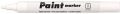 Lakový značkovač s přepouštěcím mechanismem- světlostálý inkoust, píše na neporézní povrchy- vhodný na CD, DVD, beton, kámen, dřevo, film, fólie, kov, papír, plast, pryž, sklo, porcelán- po zaschnutí odolá vodě, otěru, povětrnostním vlivům- před použitím dobře protřepejte a několikrát zatlačte na hrot, dokud se nenasytí barvou- začne-li stopa písma slábnout, proveďte dosycení krátkým zatlačením hrotu- skladovat ve vodorovné poloze- smývatelný lihem z neporézních materiálů- ventilační chránítko- po použití uzavřít- barva bílá- šířka stopy 1 - 5mm- klínový hrot