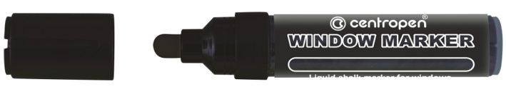 Speciální značkovač s tekutou křídou na vodní bázi. Určený pro psaní na neporézní povrchy jako tabule, sklo, okna, zrcadla, výlohy a další podobné povrchy. Vhodný také do restaurací a barů k zapisování denního menu a k tvoření nápisů a ilustrací. Má silné krycí schopnosti. Přepouštěcí mechanismus, před použitím dobře protřepejte a několikrát zatlačte hrot, dokud se nenasytí barvou. Začne-li stopa písma slábnout, proveďte dosycení krátkým zatlačením hrotu. Tekutou křídu můžete snadno setřít suchou látkou z většiny povrchů. Barva: černá Šířka stopy: 3 - 4mm Válcový hrot