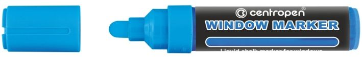 Speciální značkovač s tekutou křídou na vodní bázi. Určený pro psaní na neporézní povrchy jako tabule, sklo, okna, zrcadla, výlohy a další podobné povrchy. Vhodný také do restaurací a barů k zapisování denního menu a k tvoření nápisů a ilustrací. Má silné krycí schopnosti. Přepouštěcí mechanismus, před použitím dobře protřepejte a několikrát zatlačte hrot, dokud se nenasytí barvou. Začne-li stopa písma slábnout, proveďte dosycení krátkým zatlačením hrotu. Tekutou křídu můžete snadno setřít suchou látkou z většiny povrchů. Barva: modrá Šířka stopy: 3 - 4mm Válcový hrot