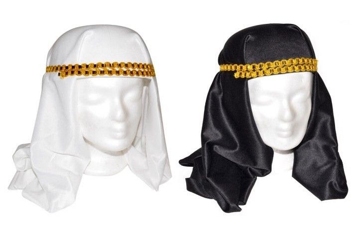 Doplněk ke karnevalové masce - Arabská pokrývka hlavy se zlatým lemem. Ideální ke kostýmu arabského šejka.