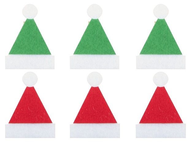 Čepice filcová na kolíčku 5 cm, 6 ks, zelená a červená