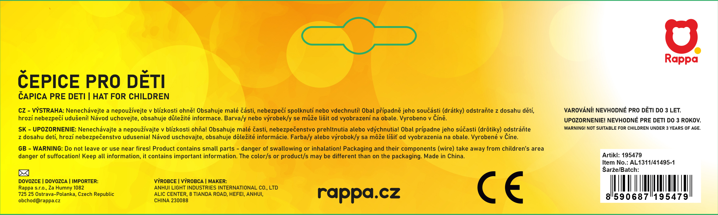 Čepice kuchař dětská