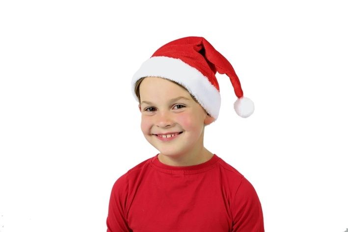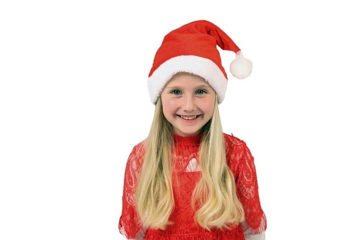 Dětská vánoční čepice má typický design ve stylu Santy s vesele červenou barvou a bílým lemováním a bambulkou. Čepice je ideální na vánoční oslavy, dětské představení a jako doplněk k vánočním kostýmům. Tyto čepice jsou považovány za symbol radosti a veselí během vánočních svátků.