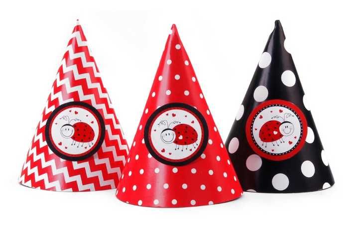 Párty kloboučky - Beruška 6 ks - počet: 6 ks - výška: 16 cm - průměr: 10 cm - v balení jsou 2ks od každé barvy viz obrázek.