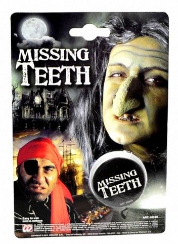 Barva na zuby vytvoří v ústech dojem chybějících, nebo zkažených zubů pro piráty, čarodějnice, čerty a jiná strašidla.
