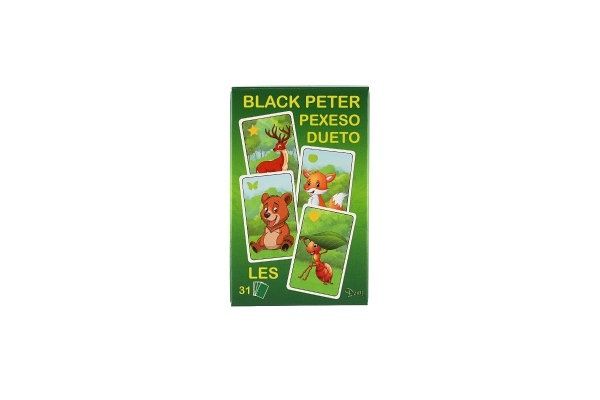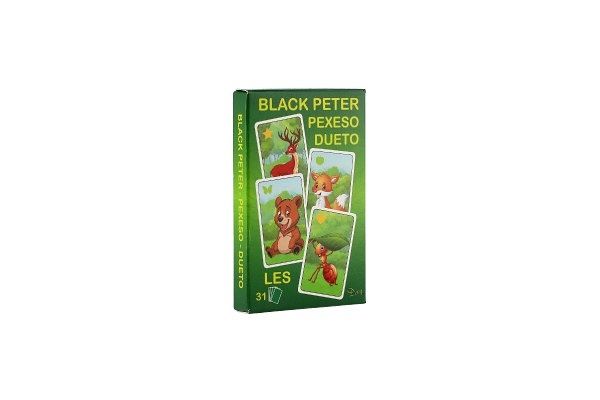 Černý Petr klasická karetní hra s obrázky. Hra se skládá z 31 karet, které jsou rozděleny do 15 dvojic, z nichž je každá dvojice označena stejným obrázkem. Pouze jediná karta se od ostatních liší a to je Černý Petr . Vyhrává ten, kdo bude mít dvojice vyloženy nejdříve. Prohrává ten, komu zůstane v ruce Černý Petr. Hry se můžou zúčastnit nejméně 3 hráči. Součástí balení je 31 karet a 1 návod. Tento karetní set si oblíbí všechny děti milující lesní zvířátka.