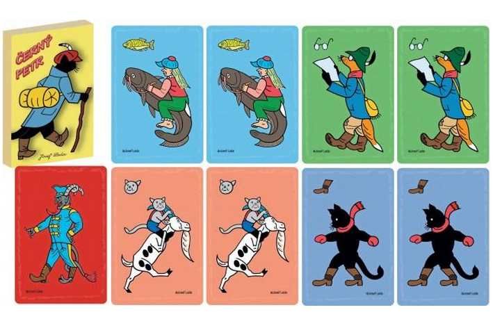 Obsah: 33 karet s oblíbeným motivem A jak se Černý Petr hraje? Minimální počet hráčů jsou tři. Rozdají se všechny listy, a kdo získá dvojice se stejným označením, odloží je hned stranou. Vyhrává ten, kdo se zbaví svých karet jako první. Prohrál ten hráč, kterému zůstal v ruce Černý Petr. Obsah: 33 karet s oblíbeným motivem A jak se Černý Petr hraje? Minimální počet hráčů jsou tři. Rozdají se všechny listy, a kdo získá dvojice se stejným označením, odloží je hned stranou. Vyhrává ten, kdo se zbaví svých karet jako první. Prohrál ten hráč, kterému zůstal v ruce Černý Petr.