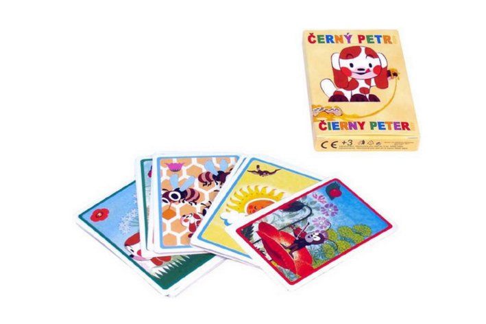 Společenská karetní hra pro děti Černý Petr s obrázky výtvarníka Zdeňka Milera.