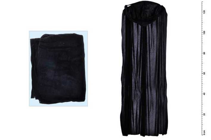 Plášť lze použít i jako doplněk ke kostýmu kostry nebo jakýkoli jiný párty kostým. Je vyroben z černého jemného materiálu. Plášť má kapuci a vázání na šňůrku u krku.