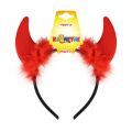 Pekelná čelenka s čertími rohy je senzačním doplňkem na karnevalový večírek nebo vánoční besídku! Čelenka je navíc zdobena červeným peřím.