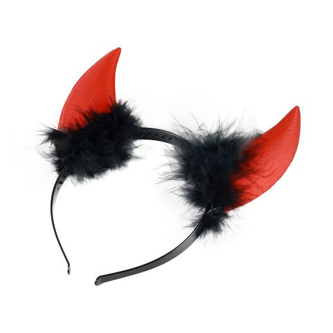 Pekelná čelenka s čertími rohy je senzačním doplňkem na karnevalový večírek nebo vánoční besídku! Čelenka je navíc zdobena černým peřím.
